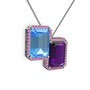 Akuamarin, ametist ve rodolit garnet 8 ayar beyaz altın kolye (40 cm gümüş rolo zincir)