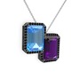 Akuamarin, ametist ve siyah zirkon 925 ayar siyah rodyum kaplama gümüş kolye (40 cm beyaz altın rolo zincir)