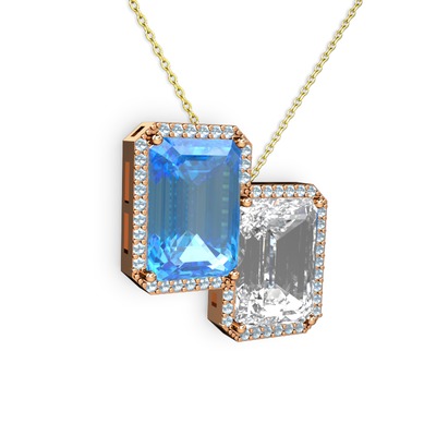 Akuamarin ve beyaz zirkon 18 ayar rose altın kolye (40 cm altın rolo zincir)