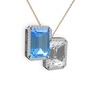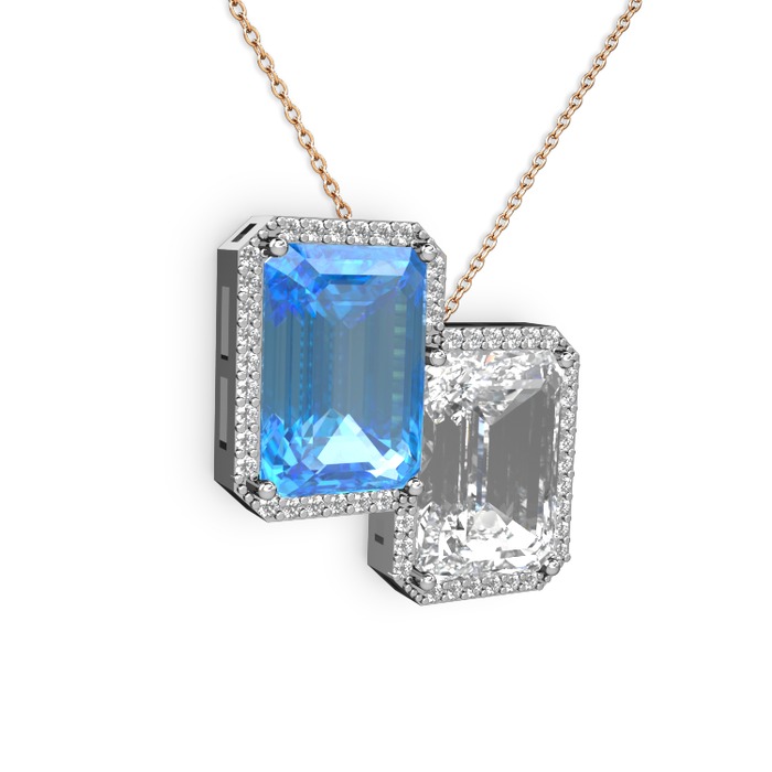 Akuamarin, beyaz zirkon ve swarovski 14 ayar beyaz altın kolye (40 cm rose altın rolo zincir)