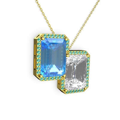 Akuamarin, beyaz zirkon ve yeşil kuvars 18 ayar altın kolye (40 cm altın rolo zincir)