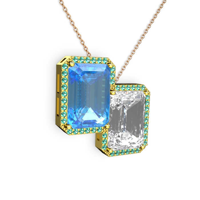 Akuamarin, beyaz zirkon ve yeşil kuvars 925 ayar altın kaplama gümüş kolye (40 cm rose altın rolo zincir)