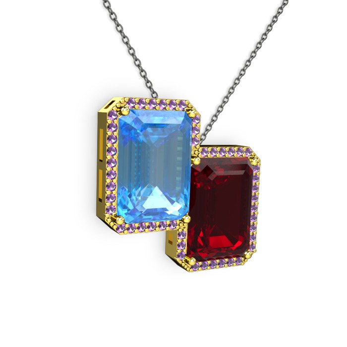 Akuamarin, garnet ve ametist 14 ayar altın kolye (40 cm gümüş rolo zincir)
