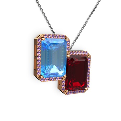 Akuamarin, garnet ve ametist 925 ayar rose altın kaplama gümüş kolye (40 cm gümüş rolo zincir)