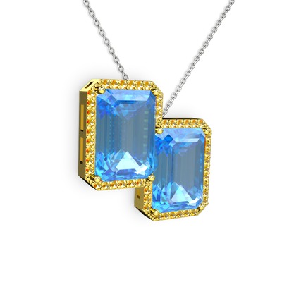 Akuamarin ve sitrin 18 ayar altın kolye (40 cm beyaz altın rolo zincir)