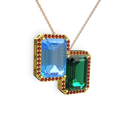 Akuamarin, yeşil kuvars ve garnet 18 ayar altın kolye (40 cm rose altın rolo zincir)