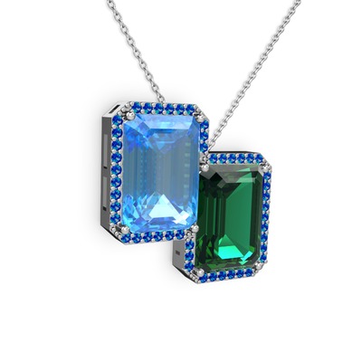 Akuamarin, yeşil kuvars ve lab safir 14 ayar beyaz altın kolye (40 cm beyaz altın rolo zincir)
