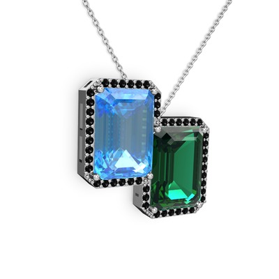 Akuamarin, yeşil kuvars ve siyah zirkon 18 ayar beyaz altın kolye (40 cm gümüş rolo zincir)