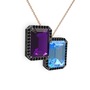 Ametist, akuamarin ve siyah zirkon 925 ayar siyah rodyum kaplama gümüş kolye (40 cm rose altın rolo zincir)