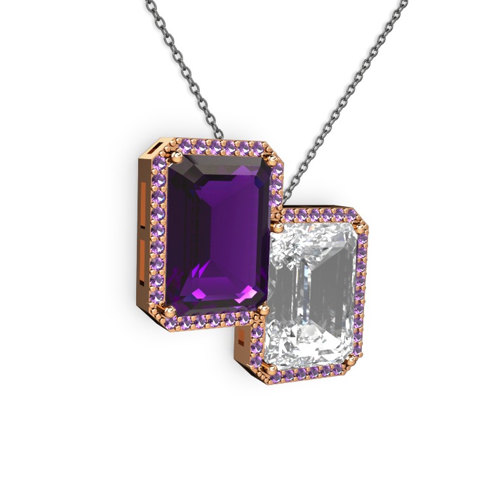 Ametist ve beyaz zirkon 14 ayar rose altın kolye (40 cm gümüş rolo zincir)