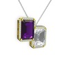 Ametist, beyaz zirkon ve akuamarin 18 ayar altın kolye (40 cm gümüş rolo zincir)