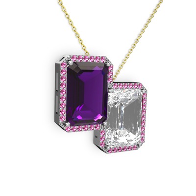 Ametist, beyaz zirkon ve rodolit garnet 925 ayar gümüş kolye (40 cm gümüş rolo zincir)
