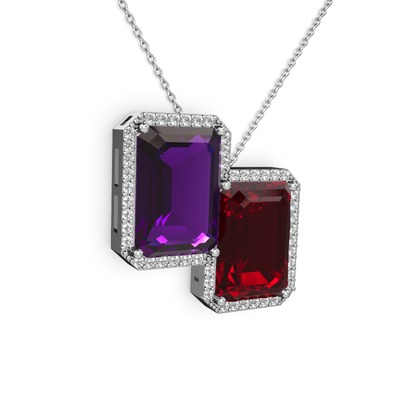 Ametist, garnet ve swarovski 14 ayar beyaz altın kolye (40 cm gümüş rolo zincir)