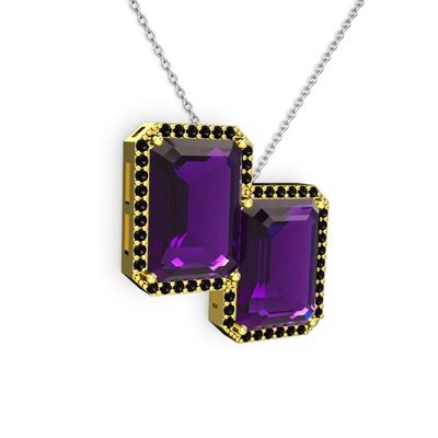 Ametist ve siyah zirkon 14 ayar altın kolye (40 cm beyaz altın rolo zincir)
