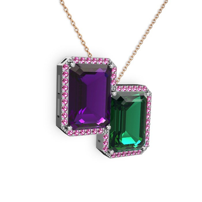 Ametist, yeşil kuvars ve rodolit garnet 925 ayar gümüş kolye (40 cm gümüş rolo zincir)