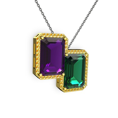 Ametist, yeşil kuvars ve sitrin 18 ayar altın kolye (40 cm gümüş rolo zincir)