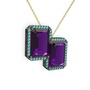 Ametist ve yeşil kuvars 925 ayar siyah rodyum kaplama gümüş kolye (40 cm altın rolo zincir)