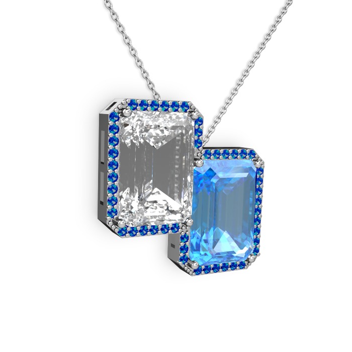Beyaz zirkon, akuamarin ve lab safir 18 ayar beyaz altın kolye (40 cm beyaz altın rolo zincir)