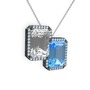 Beyaz zirkon ve akuamarin 925 ayar siyah rodyum kaplama gümüş kolye (40 cm gümüş rolo zincir)