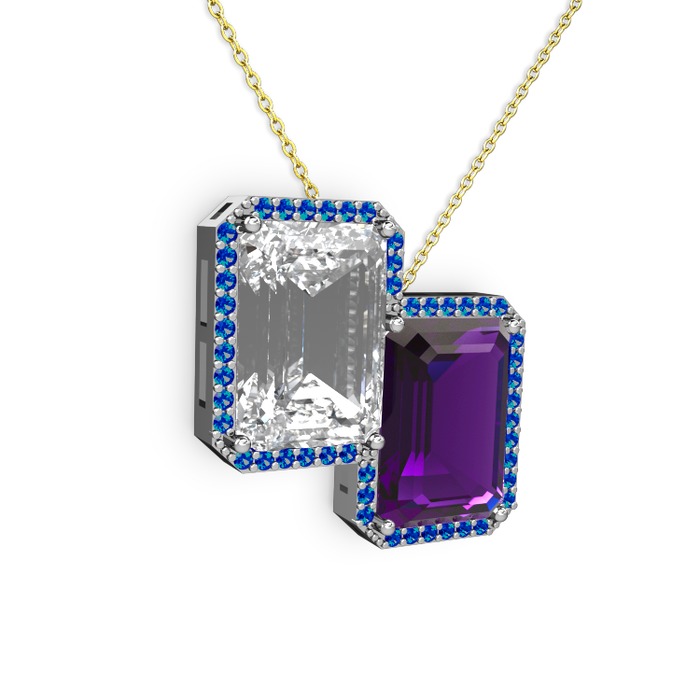 Beyaz zirkon, ametist ve lab safir 18 ayar beyaz altın kolye (40 cm altın rolo zincir)
