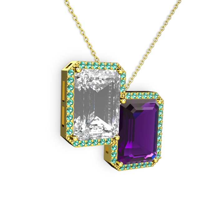 Beyaz zirkon, ametist ve yeşil kuvars 8 ayar altın kolye (40 cm altın rolo zincir)