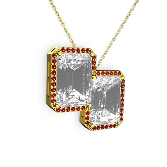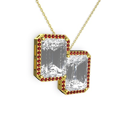 Beyaz zirkon ve garnet 925 ayar altın kaplama gümüş kolye (40 cm altın rolo zincir)