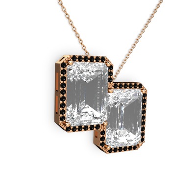 Beyaz zirkon ve siyah zirkon 925 ayar rose altın kaplama gümüş kolye (40 cm rose altın rolo zincir)