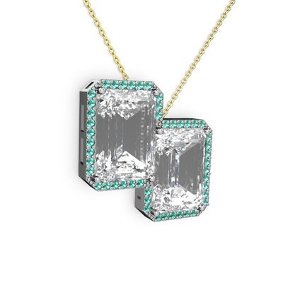 Beyaz zirkon ve yeşil kuvars 925 ayar gümüş kolye (40 cm gümüş rolo zincir)