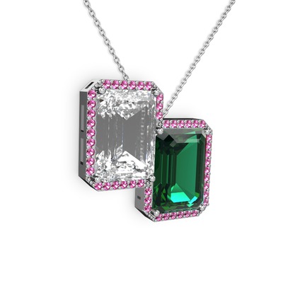 Avis Kolye - Beyaz zirkon, yeşil kuvars ve rodolit garnet 14 ayar beyaz altın kolye (40 cm beyaz altın rolo zincir)