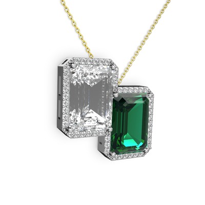 Beyaz zirkon, yeşil kuvars ve swarovski 925 ayar gümüş kolye (40 cm altın rolo zincir)