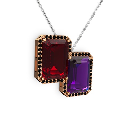 Garnet, ametist ve siyah zirkon 925 ayar rose altın kaplama gümüş kolye (40 cm beyaz altın rolo zincir)