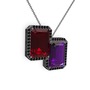 Garnet, ametist ve siyah zirkon 925 ayar siyah rodyum kaplama gümüş kolye (40 cm gümüş rolo zincir)