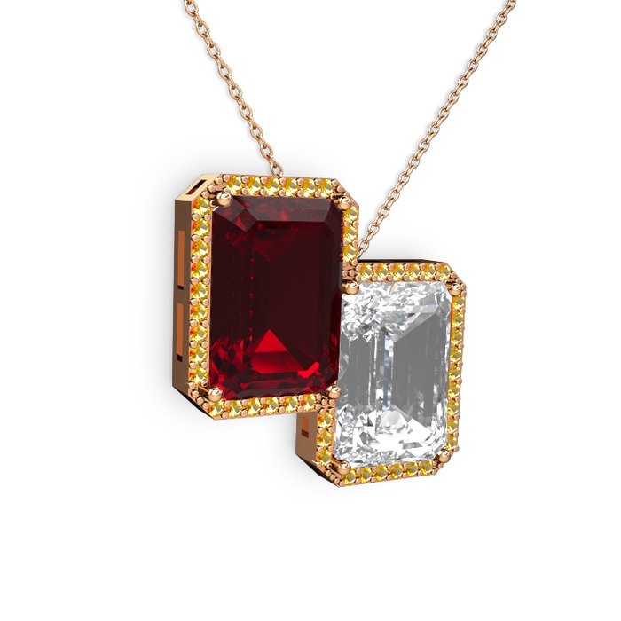 Garnet, beyaz zirkon ve sitrin 18 ayar rose altın kolye (40 cm rose altın rolo zincir)