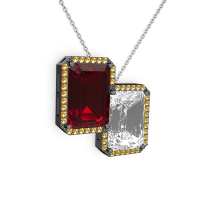 Garnet, beyaz zirkon ve sitrin 925 ayar siyah rodyum kaplama gümüş kolye (40 cm beyaz altın rolo zincir)