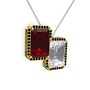 Garnet, beyaz zirkon ve siyah zirkon 14 ayar altın kolye (40 cm beyaz altın rolo zincir)
