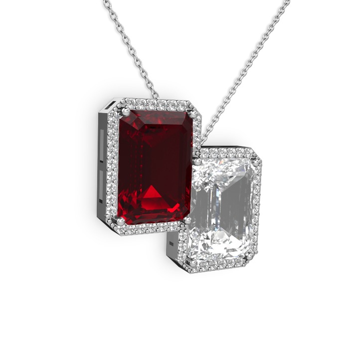 Garnet, beyaz zirkon ve swarovski 8 ayar beyaz altın kolye (40 cm beyaz altın rolo zincir)