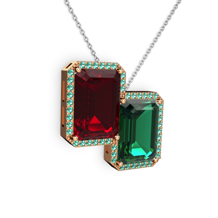 Garnet ve yeşil kuvars 14 ayar rose altın kolye (40 cm gümüş rolo zincir)