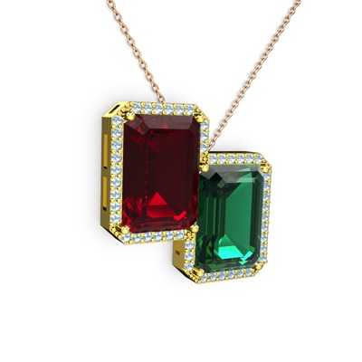 Garnet, yeşil kuvars ve akuamarin 14 ayar altın kolye (40 cm gümüş rolo zincir)