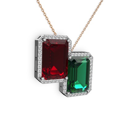 Garnet, yeşil kuvars ve swarovski 14 ayar beyaz altın kolye (40 cm rose altın rolo zincir)