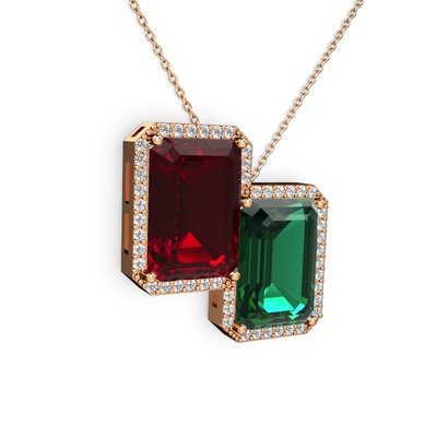 Garnet, yeşil kuvars ve swarovski 8 ayar rose altın kolye (40 cm rose altın rolo zincir)