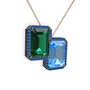 Yeşil kuvars, akuamarin ve lab safir 925 ayar siyah rodyum kaplama gümüş kolye (40 cm rose altın rolo zincir)