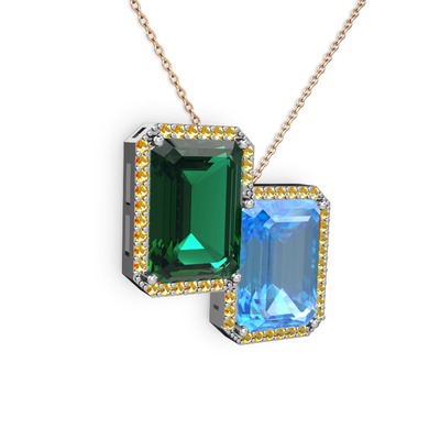 Yeşil kuvars, akuamarin ve sitrin 14 ayar beyaz altın kolye (40 cm gümüş rolo zincir)