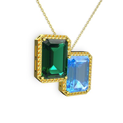 Yeşil kuvars, akuamarin ve sitrin 8 ayar altın kolye (40 cm altın rolo zincir)