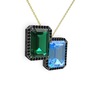 Yeşil kuvars, akuamarin ve siyah zirkon 925 ayar siyah rodyum kaplama gümüş kolye (40 cm altın rolo zincir)