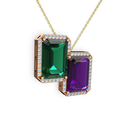 Yeşil kuvars, ametist ve akuamarin 18 ayar rose altın kolye (40 cm altın rolo zincir)