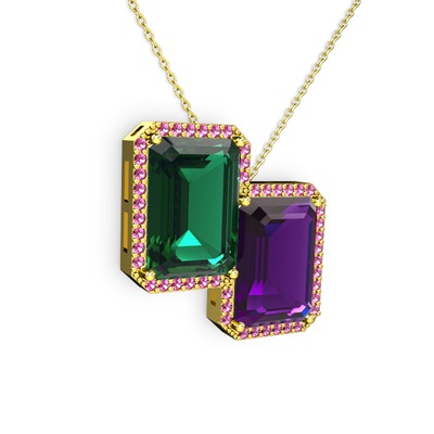 Yeşil kuvars, ametist ve rodolit garnet 8 ayar altın kolye (40 cm altın rolo zincir)