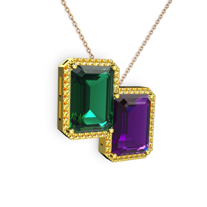 Yeşil kuvars, ametist ve sitrin 14 ayar altın kolye (40 cm rose altın rolo zincir)