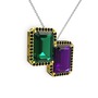Yeşil kuvars, ametist ve siyah zirkon 14 ayar altın kolye (40 cm beyaz altın rolo zincir)