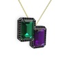 Yeşil kuvars, ametist ve siyah zirkon 925 ayar siyah rodyum kaplama gümüş kolye (40 cm gümüş rolo zincir)