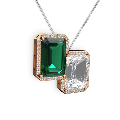 Yeşil kuvars, beyaz zirkon ve swarovski 18 ayar rose altın kolye (40 cm beyaz altın rolo zincir)